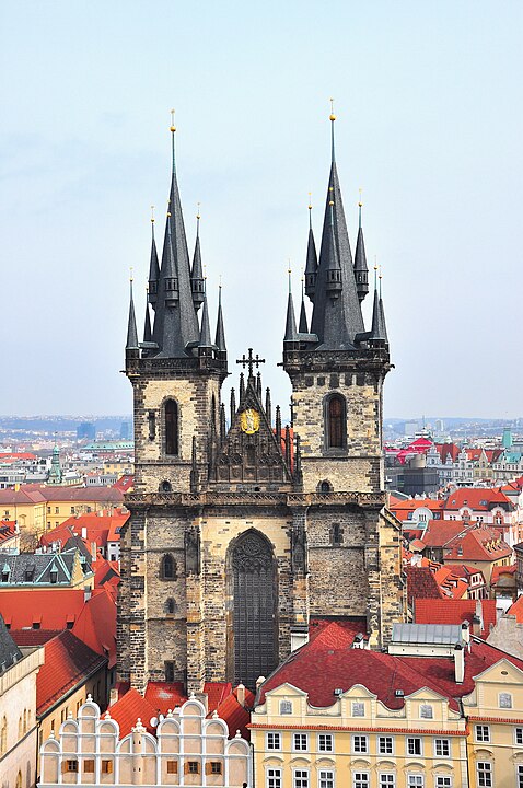 Dominujący nad Rynkiem Staromiejskim, Kościół Matki Bożej przed Tynem to majestatyczny symbol gotyckiej architektury. Jego strzeliste wieże są jednym z najbardziej rozpoznawalnych zabytków Pragi.